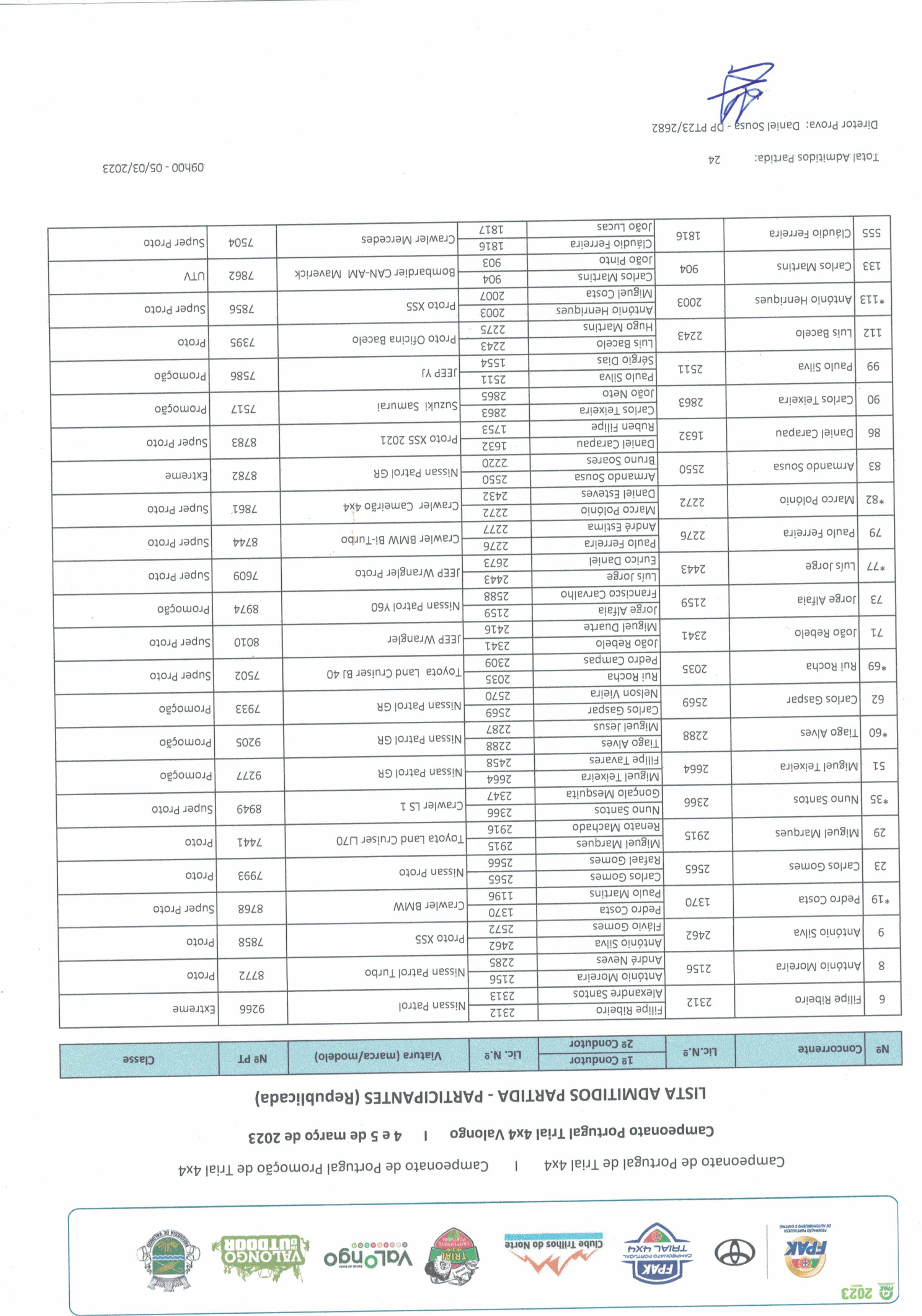 Lista Admitidos Campeonato Portugal Trial 4X4 Valongo Oficial